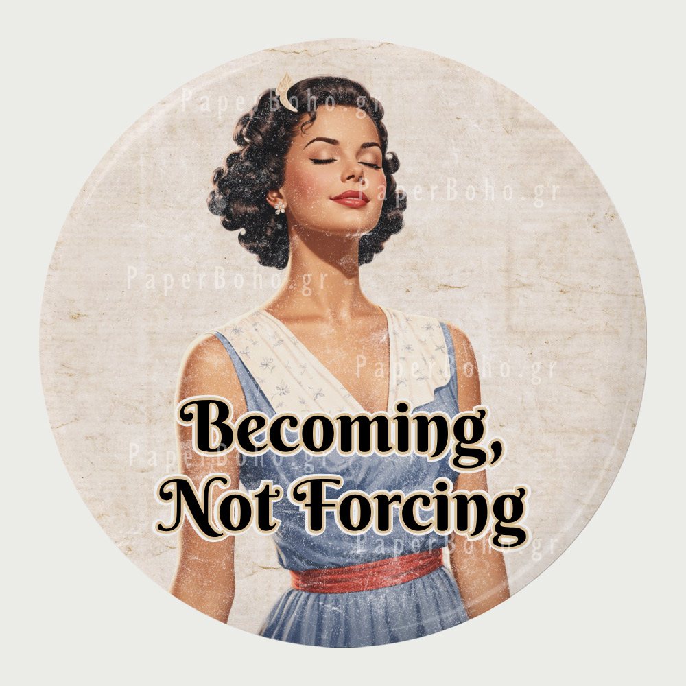 Η σειρά What Finds You αντλεί την εικόνα της από τη δεκαετία του ’50, μια εποχή όπου η μοναδικότητα της γυναίκας σπάνια αναγνωριζόταν. Σε αυτή τη σειρά, οι ρετρό γυναικείες φιγούρες δεν ποζάρουν, δεν απευθύνονται, δεν ζητούν αναγνώριση. Με κλειστά μάτια και ήρεμη στάση σώματος, στρέφονται προς τα μέσα. Τα μαγνητάκια της σειράς What Finds You τιμούν κάτι πιο ήσυχο και βαθύ: τη στιγμή όπου η γυναίκα παύει να εξηγεί τον εαυτό της και απλώς υπάρχει όπως ακριβώς είναι. Όχι ως σύμβολο, αλλά ως παρουσία. Οι απλές φράσεις λειτουργούν σαν εσωτερικές σημειώσεις, σαν υπενθυμίσεις πως δεν χρειάζεται να αποδείξεις τίποτα για να είσαι ο εαυτός σου.